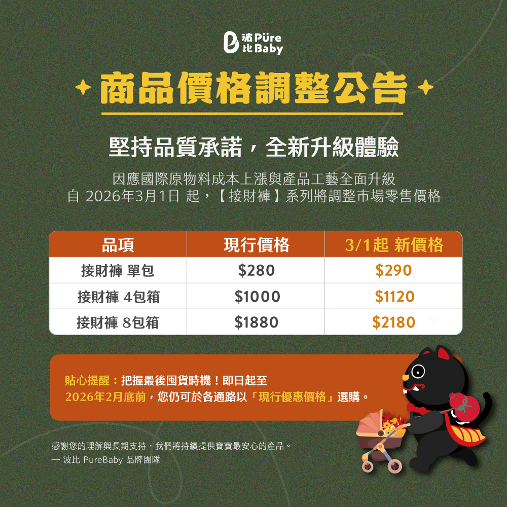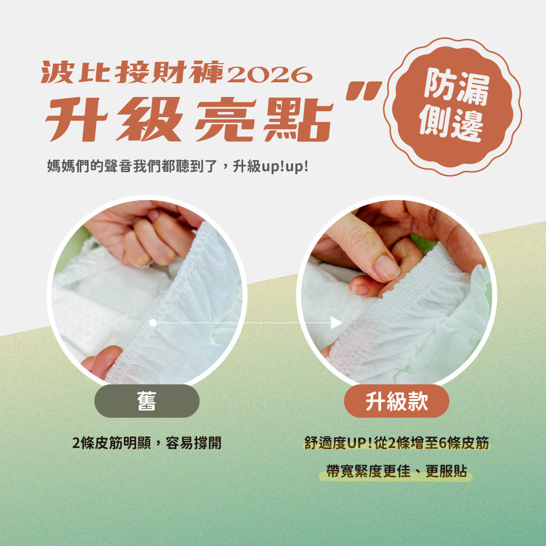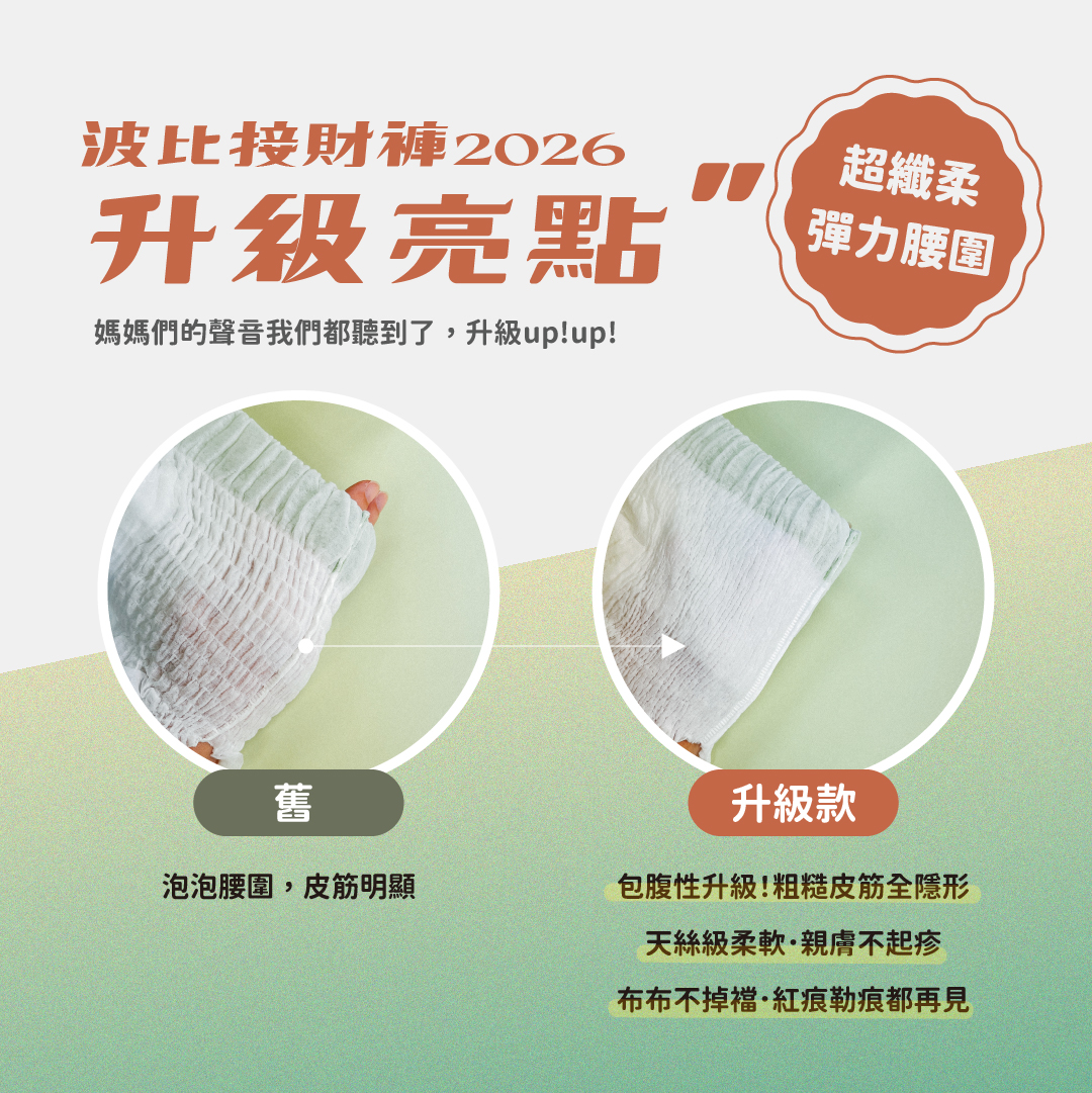 我們已於2026年全面升級【波比 PureBaby接財褲】的材質與工藝: