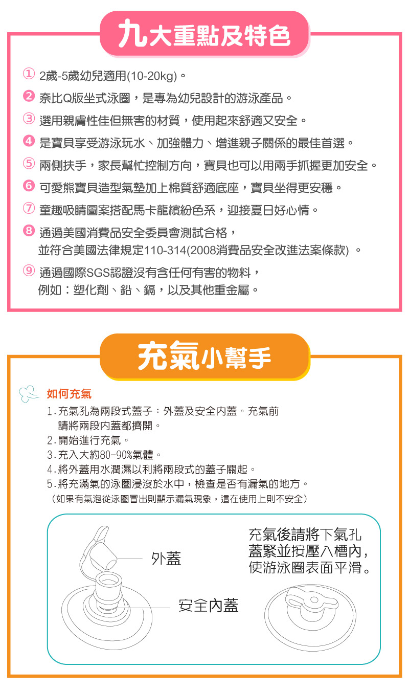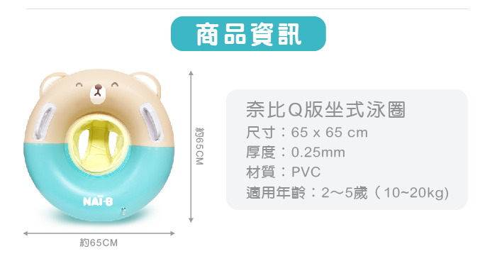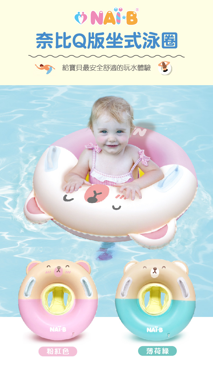 親膚性材質保護寶貝嬌嫩肌膚,讓寶貝安心又輕鬆的在水裡遊玩!