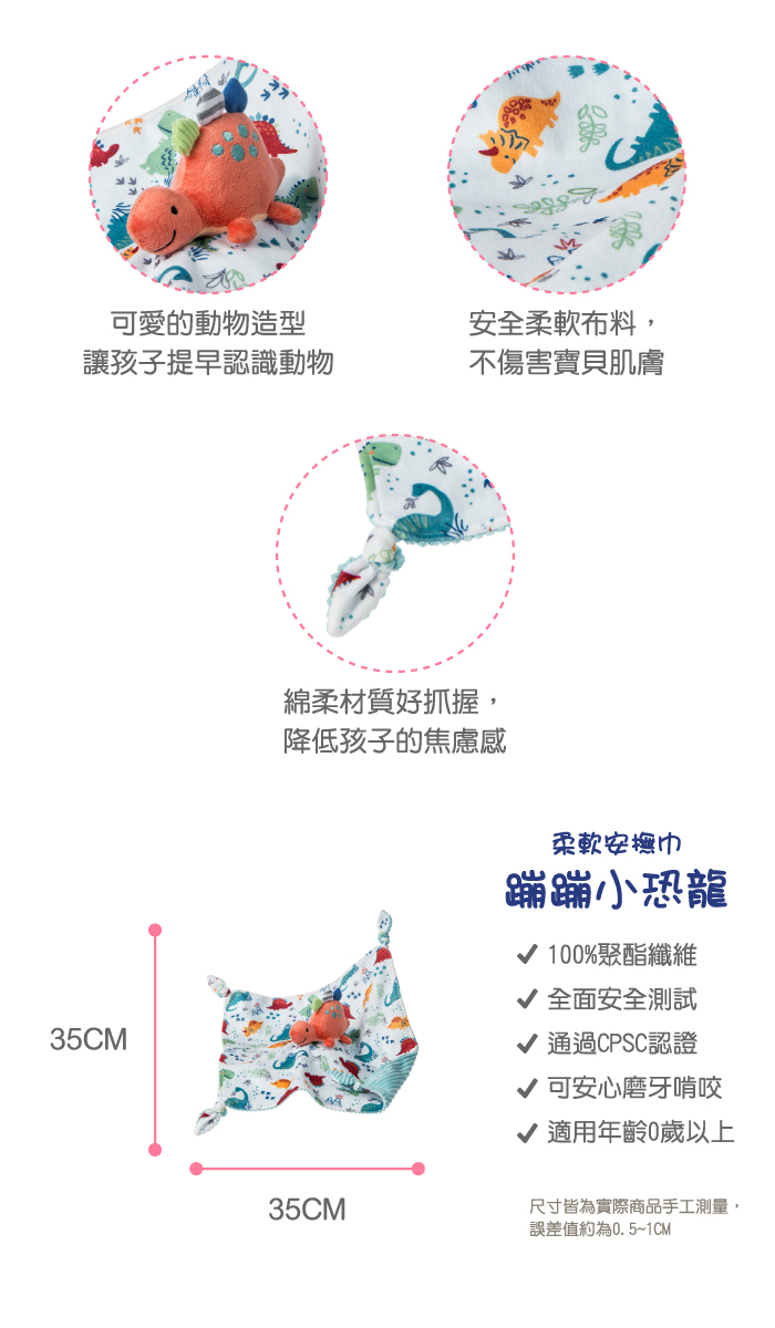 ●纖細柔軟布料不傷害寶寶柔嫩肌膚,有效的安撫寶寶