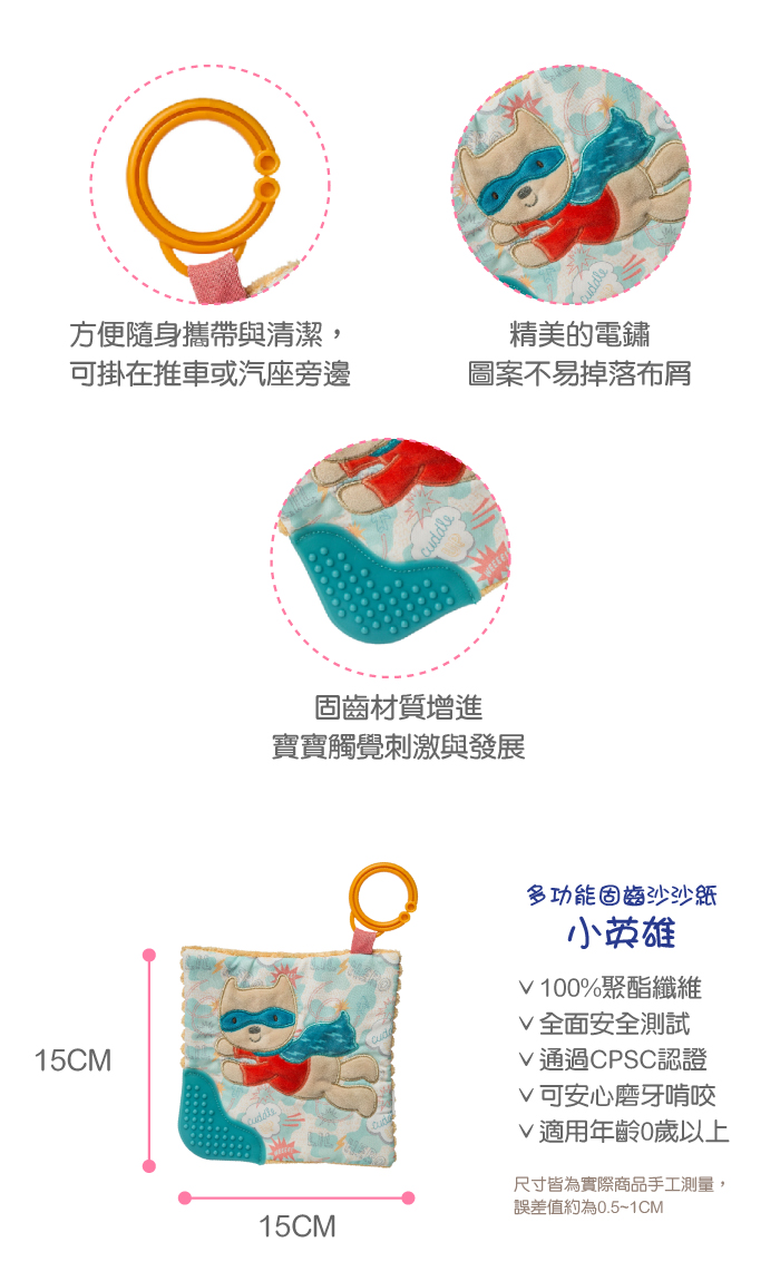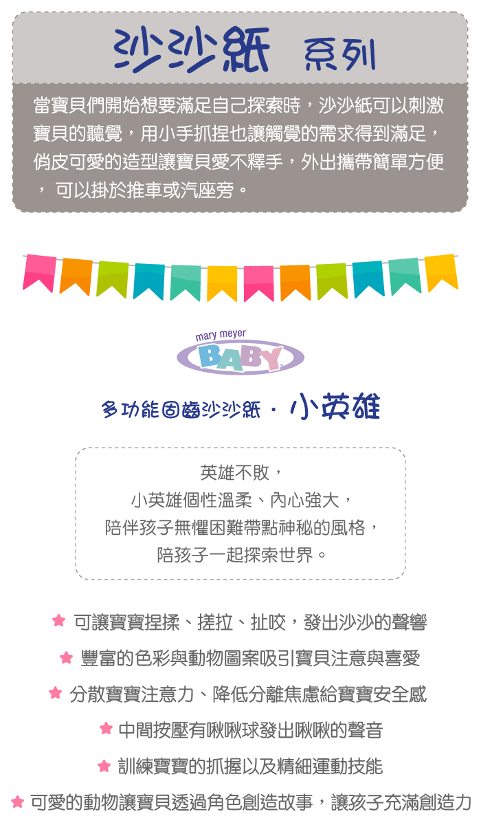 ●內有寶貝最愛的沙沙紙,可有效安撫寶寶的情緒。