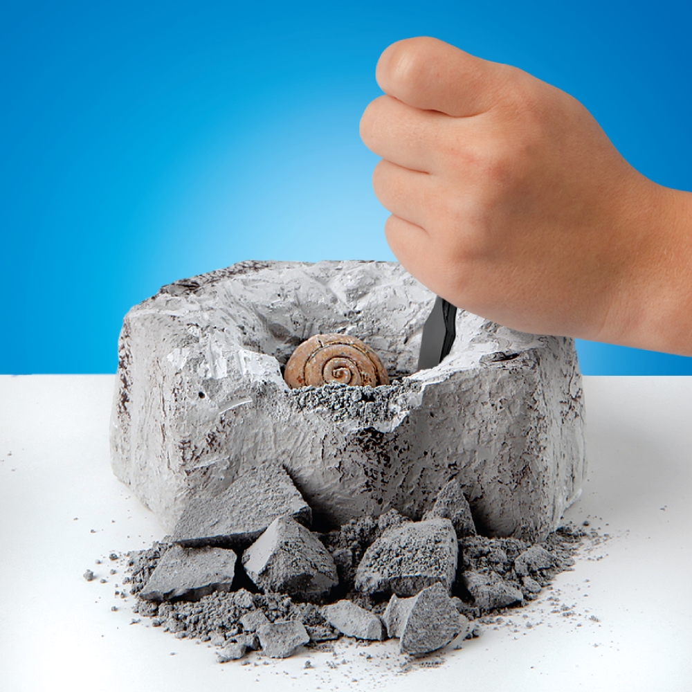 運用內附的安全鑿子細心的挖出獨一無二的天然化石。
