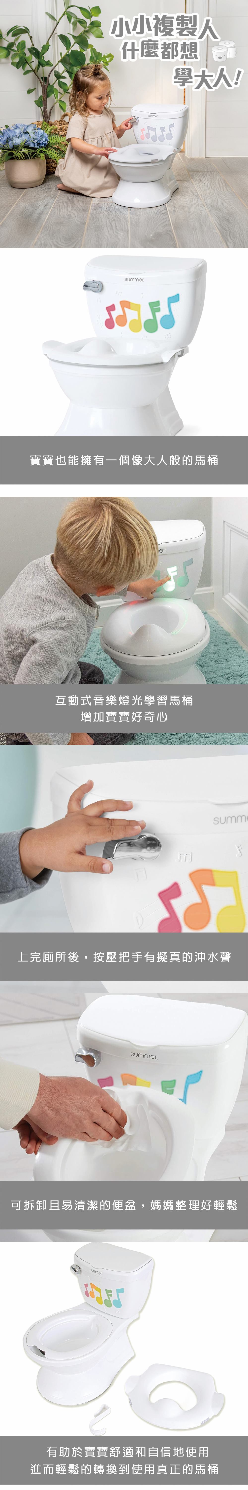 6.互動式音樂燈光學習⾺桶,內含可拆卸且易清潔的便盆,媽媽整 理好輕鬆。