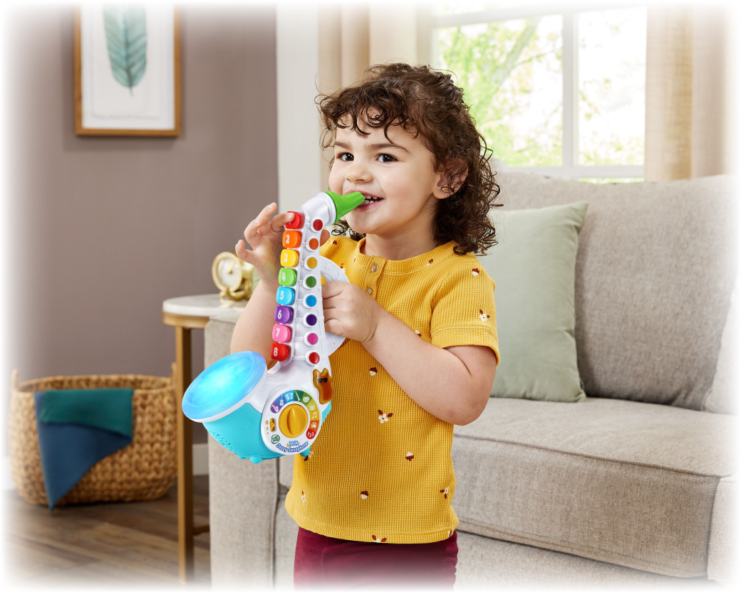 ●附上兩張雙面音樂卡,學習彈奏流行歌曲。邊吹邊彈時,喇叭會有不同燈光閃爍