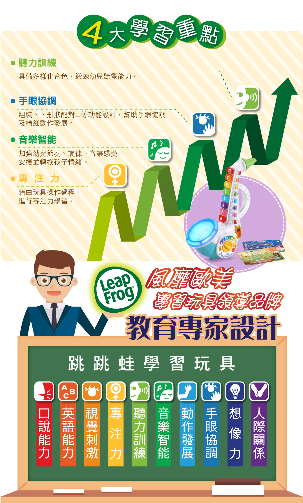●音樂模式,按下爵士貓按鍵,可與爵士貓共同演出,讓孩子發揮想像力