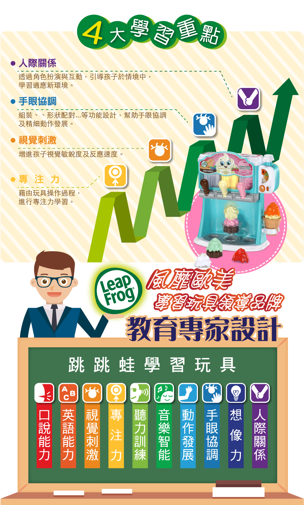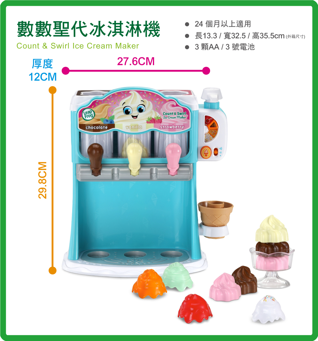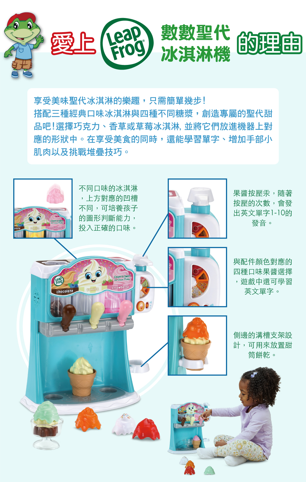●完成聖代冰淇淋,選擇喜愛糖漿並按壓,會有1-10英文數數