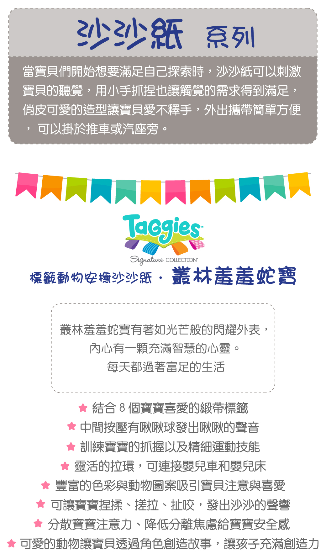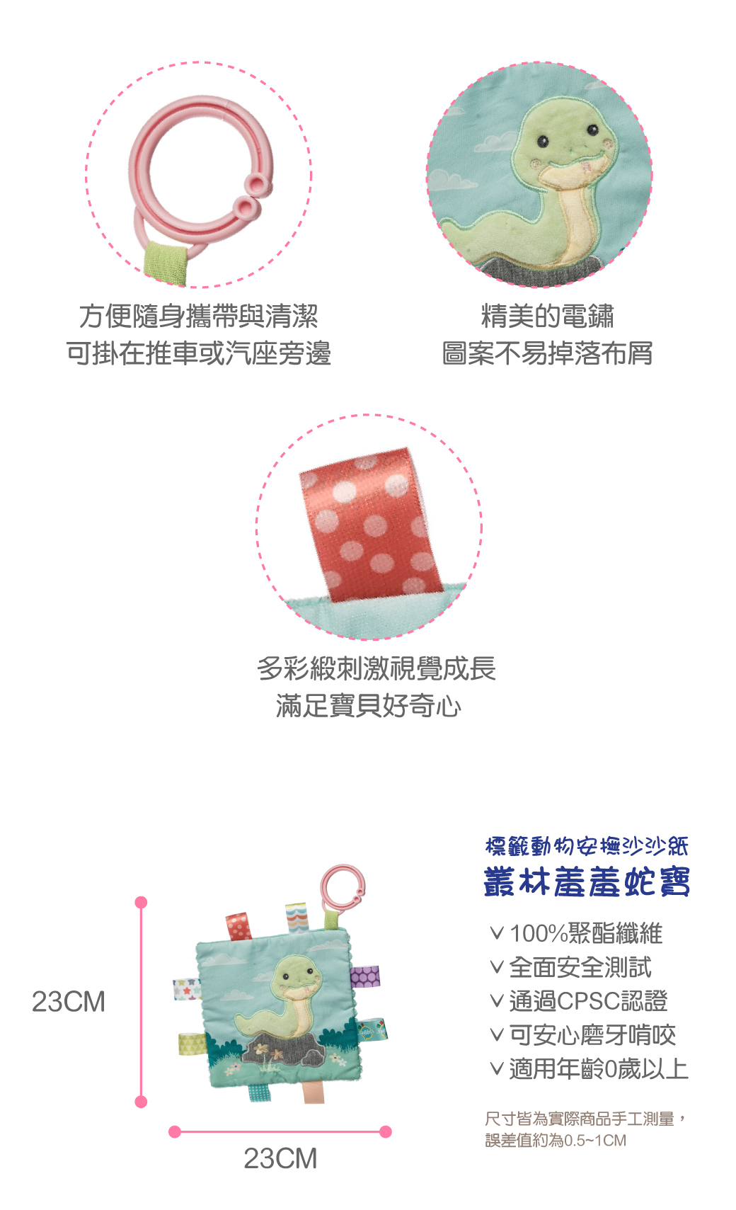 ●結合8個寶寶喜愛的緞帶標籤,提供觸感的刺激