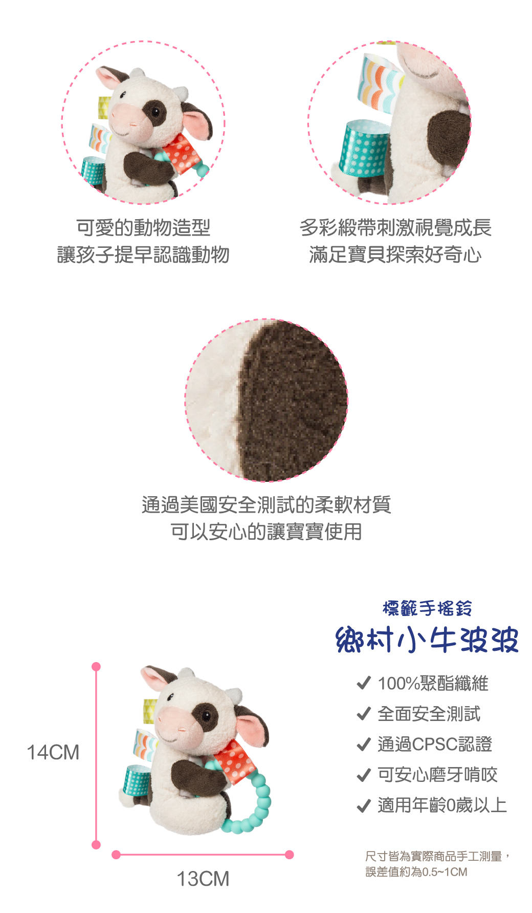 ●商品聲響設計,可刺激寶寶聽覺,亦適合寶寶手指動作練習