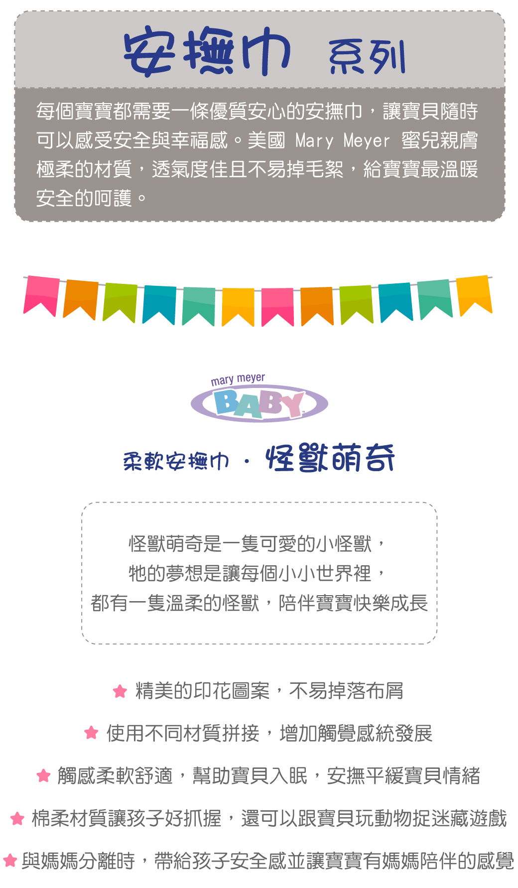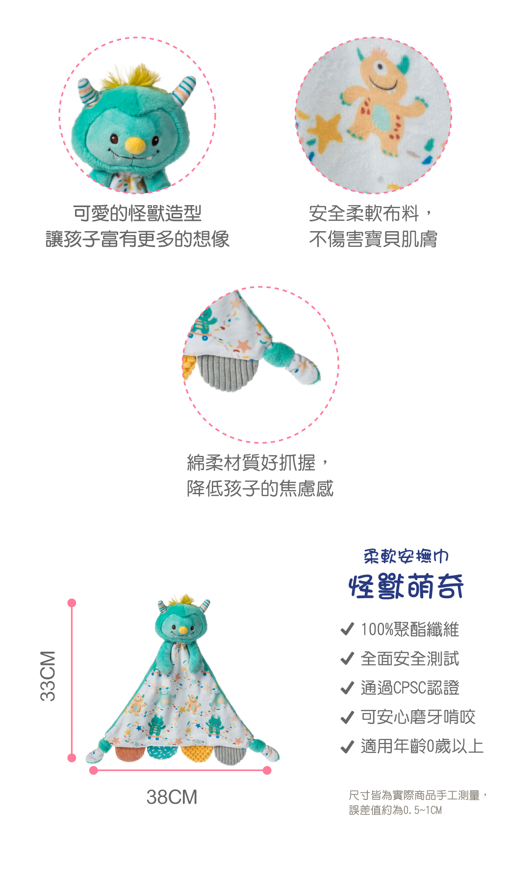 ●繽紛的色彩搭配精緻刺繡細節,有助於促進寶寶視覺發展