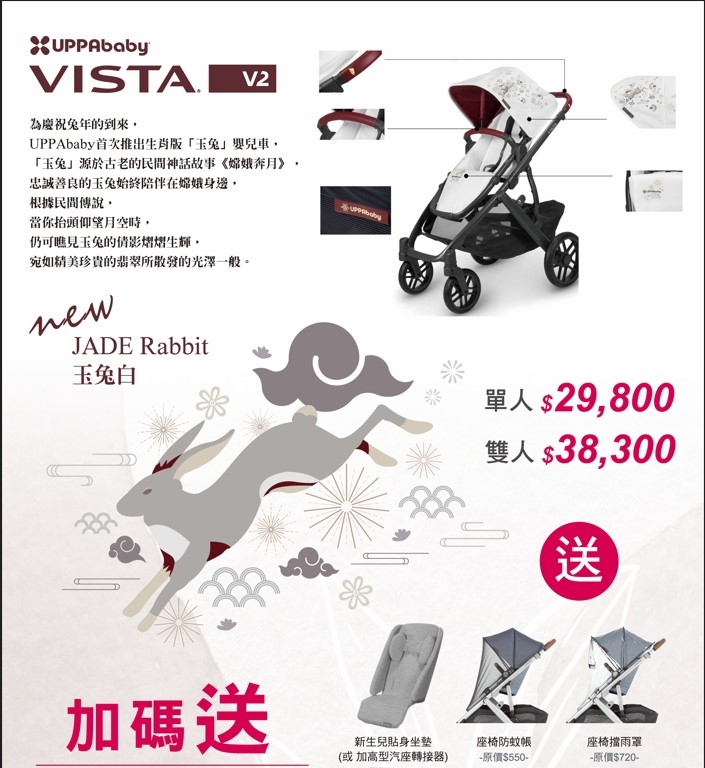 1. UPPAbaby頂級車款,最多可擴充至2個座椅及一組輔助踏板。
