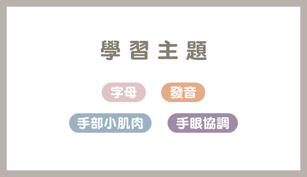 ●學習主題:字母/發音/手部小肌肉/手眼協調