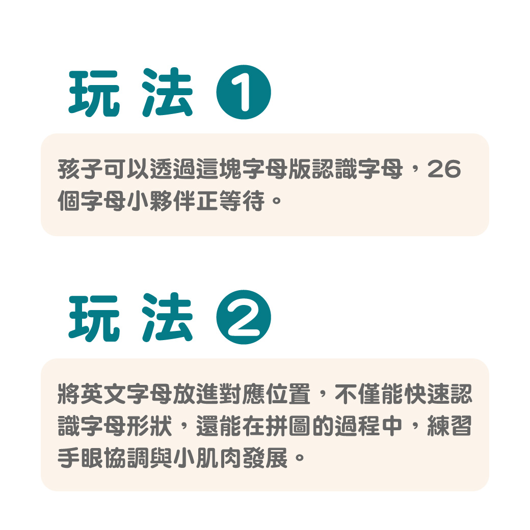 ●將英文字母放進對應位置,不僅能快速認識字母形狀,