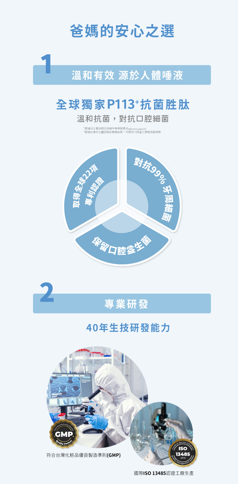 🦷 獨家專利P113+抗菌胜肽