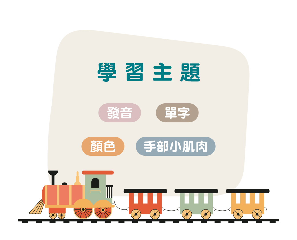 ●可依照火車上的字母,拼成英文單字,認識ABC字母