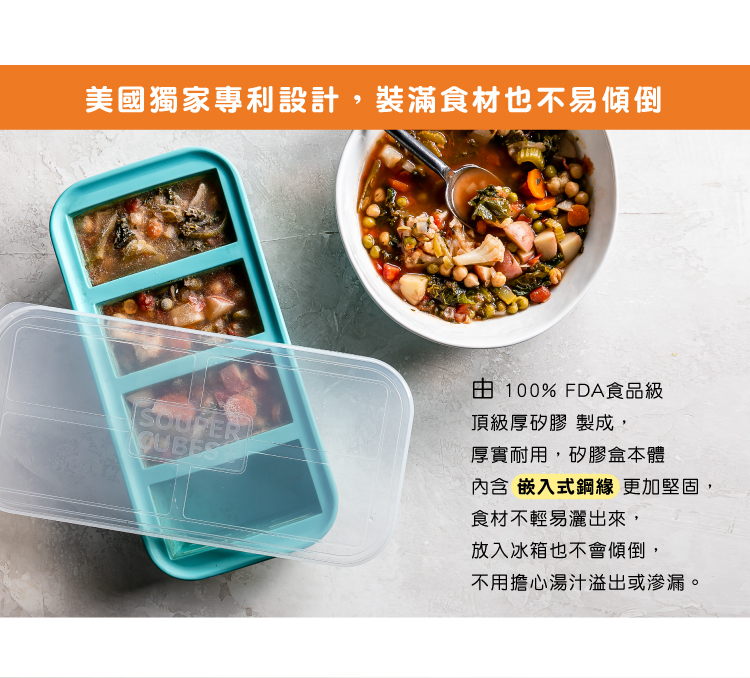 多功能食品級矽膠保鮮盒讓冷凍個人份量的湯品、