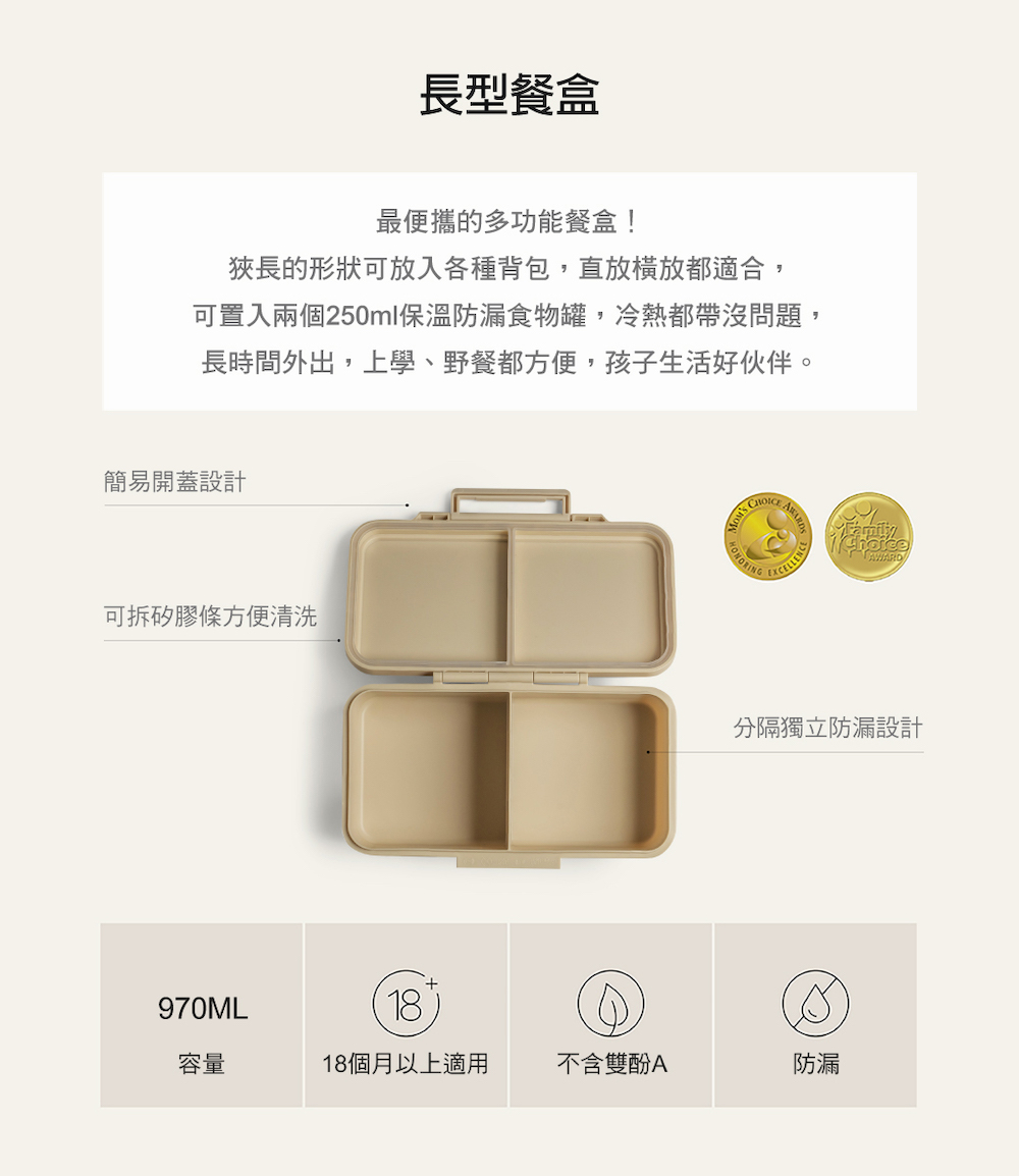 可置入兩個250ml保溫防漏食物罐,冷熱都帶沒問題,