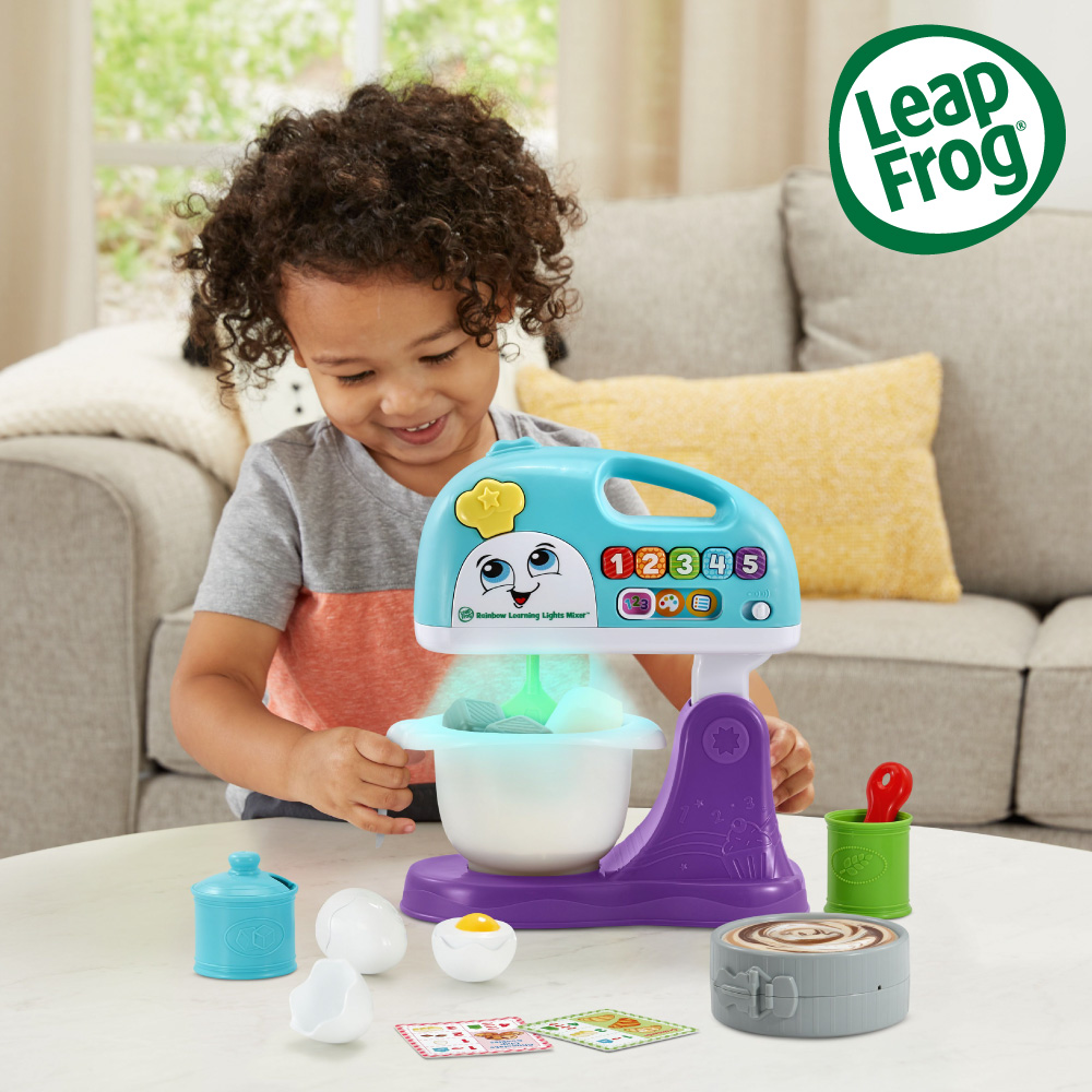 *數字模式-將材料放入攪拌碗,選擇數字按鈕使槳旋轉並發出彩色燈光,並聆聽數字的發音