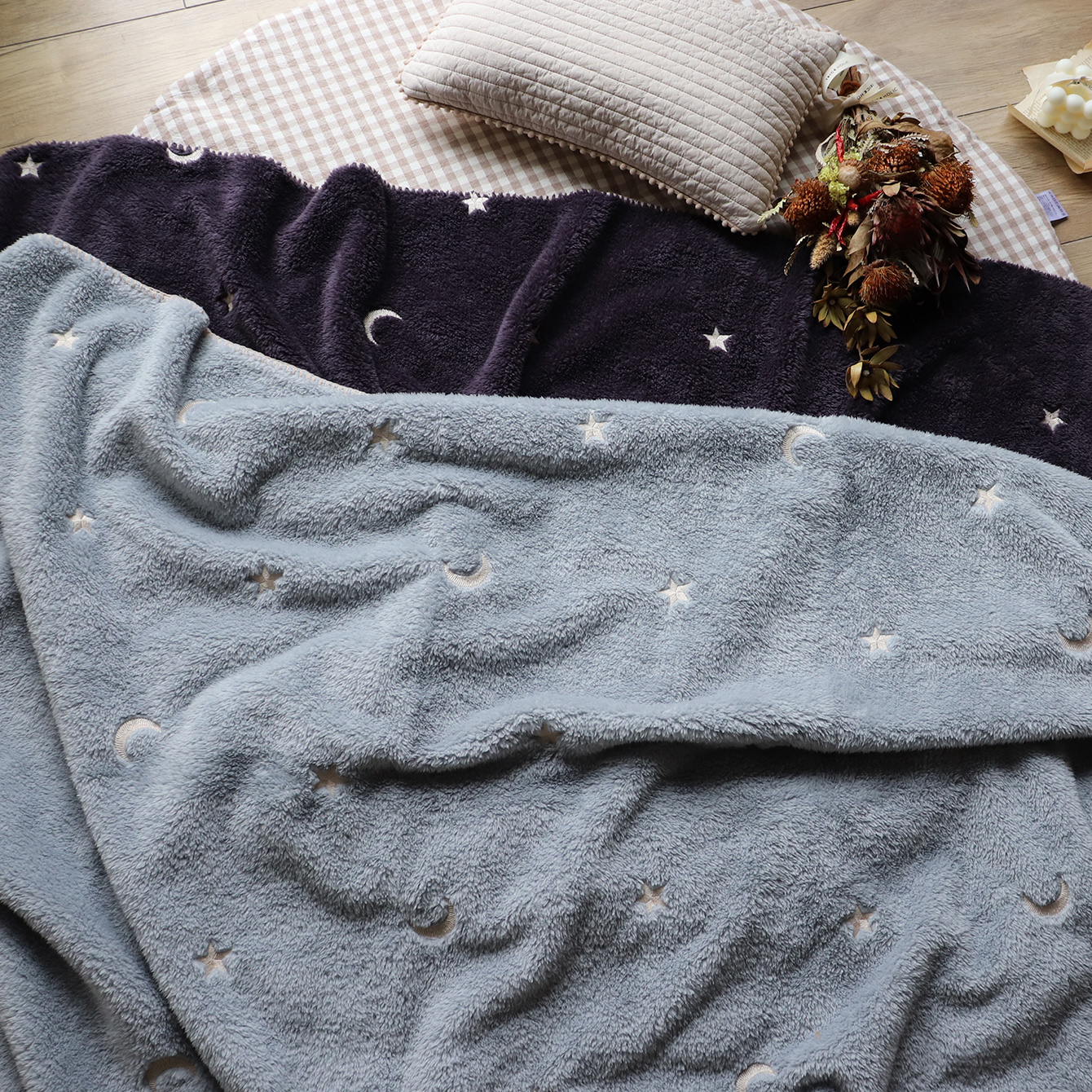 『現貨-知性灰』【Trick Holic】星星月亮刺繡毛毯-70x85cm-兩色可選(神秘紫缺貨中)