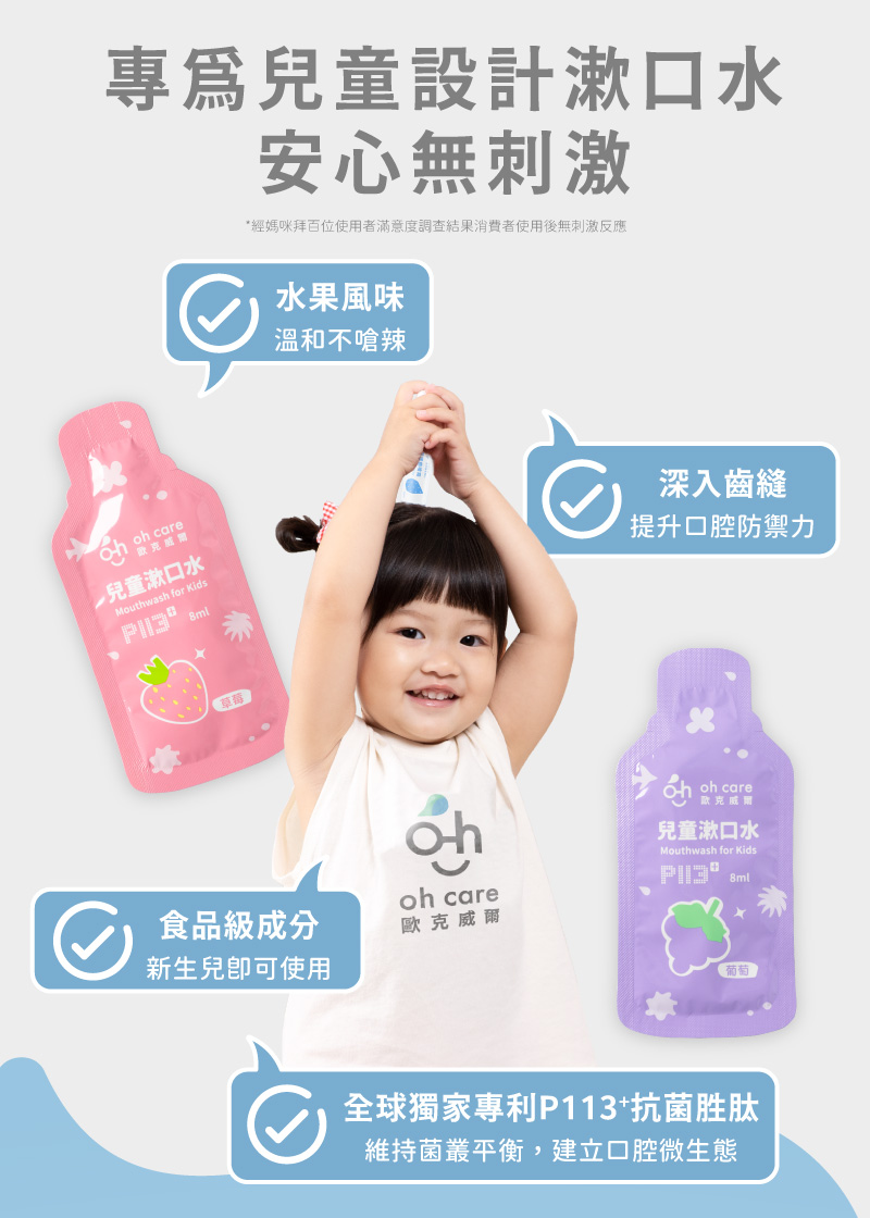 oh care 歐克威爾 兒童漱口水 旅行組8ml*20入-共2種口味可選