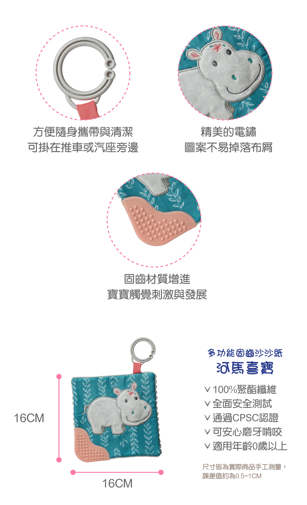 ●安全柔軟布料適合孩子抓握。