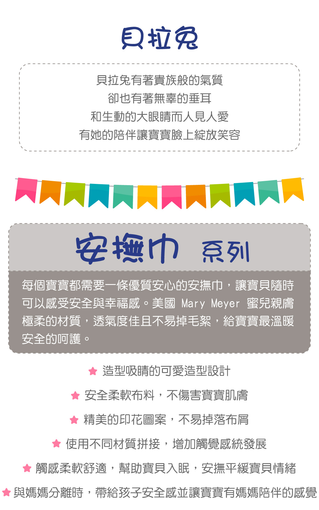 ●高貴又甜美的貝拉兔,搭配柔軟奢華的白色布料和精緻的的粉紅色刺繡,讓寶寶臉上綻放笑容