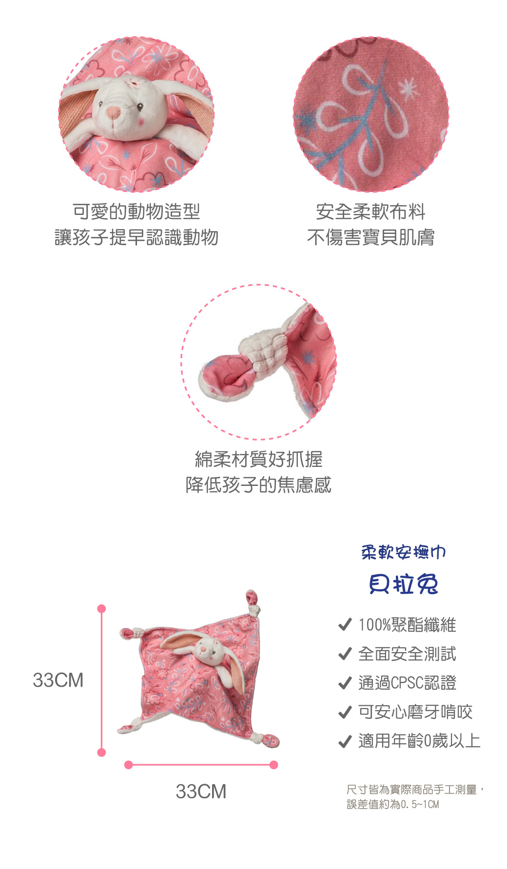 ●觸感柔軟且帶給寶寶安全感,陪伴寶寶讓他勇敢自行入睡