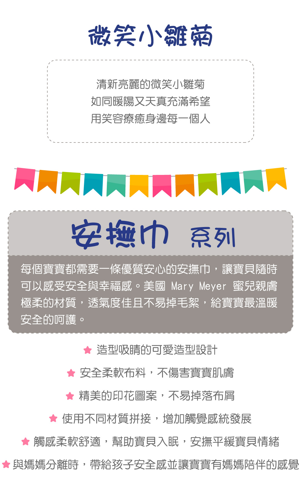 ●觸感柔軟且帶給寶寶安全感,陪伴寶寶讓他勇敢自行入睡