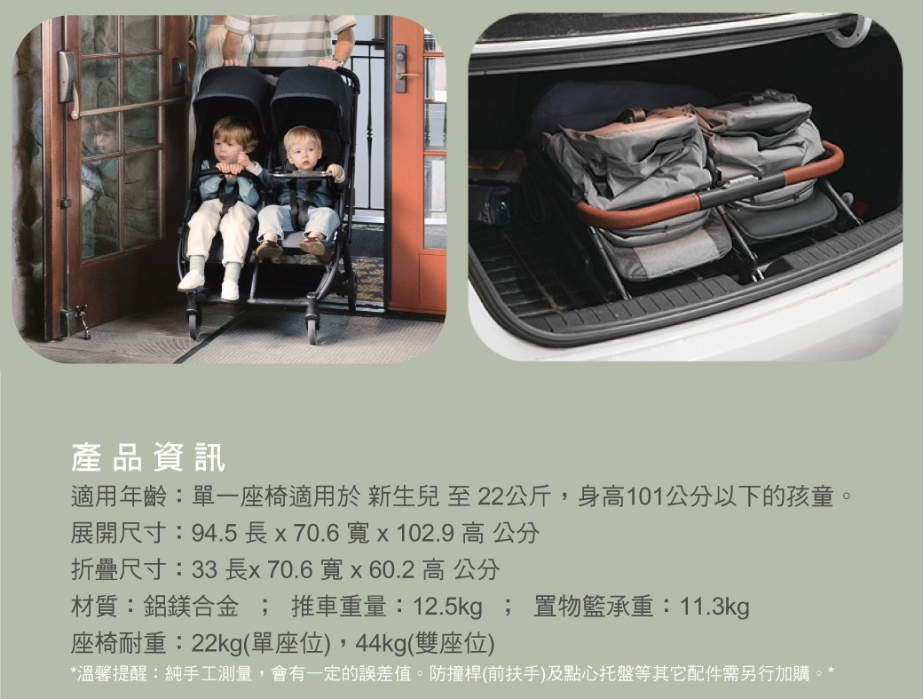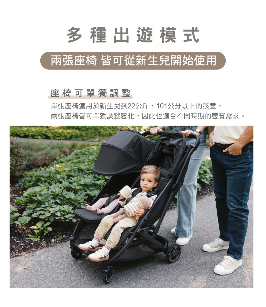 ●兩張座椅、腳踏墊、椅背及遮陽篷皆可各別調整,