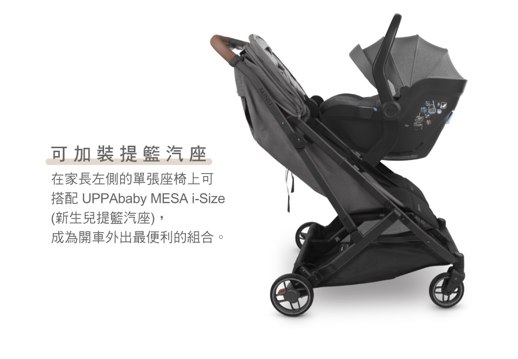 且能搭配MESA i-Size 新生兒提籃(單邊使用需搭配轉接器)