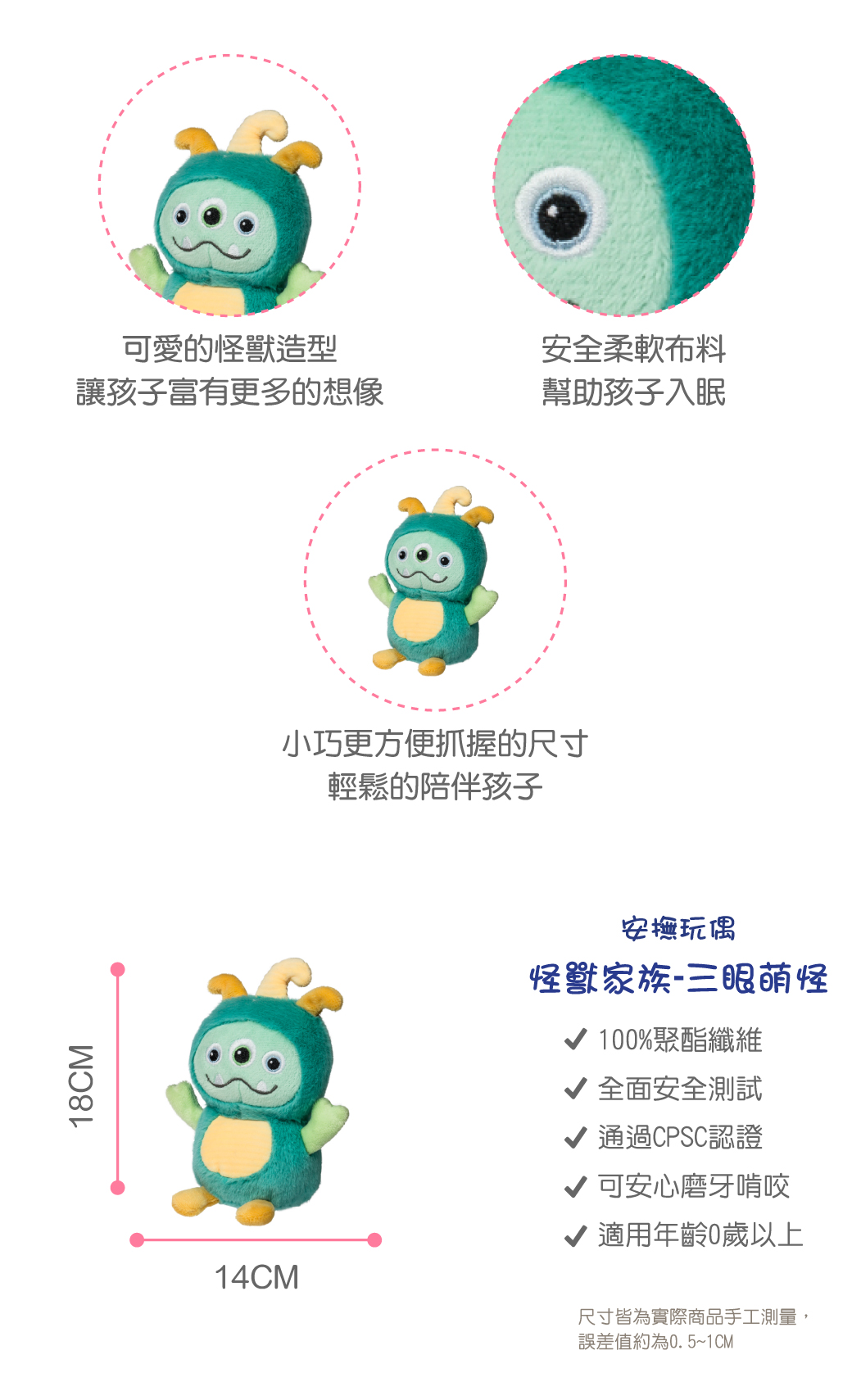 ●柔軟的觸感帶來滿滿安全感,幫助寶寶勇敢學會自行入睡