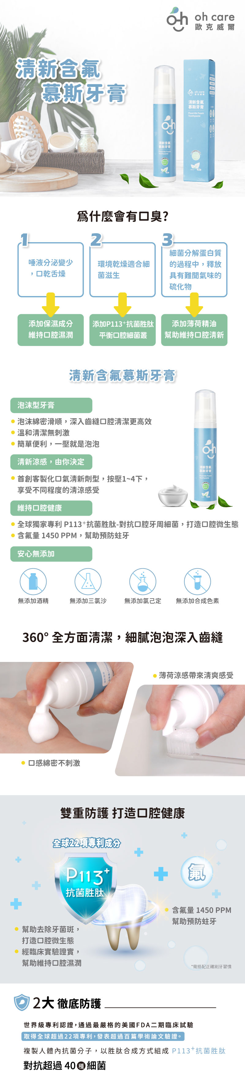 品名 l oh care 歐克威爾 清新含氟慕斯牙膏 100ml/入,薄荷