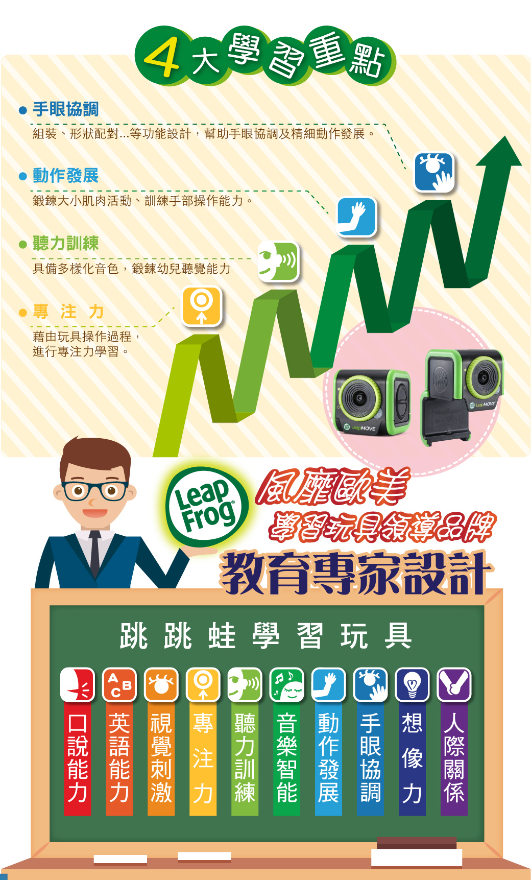●多元學習主題:運動技能/數學/閱讀/字母/拼音