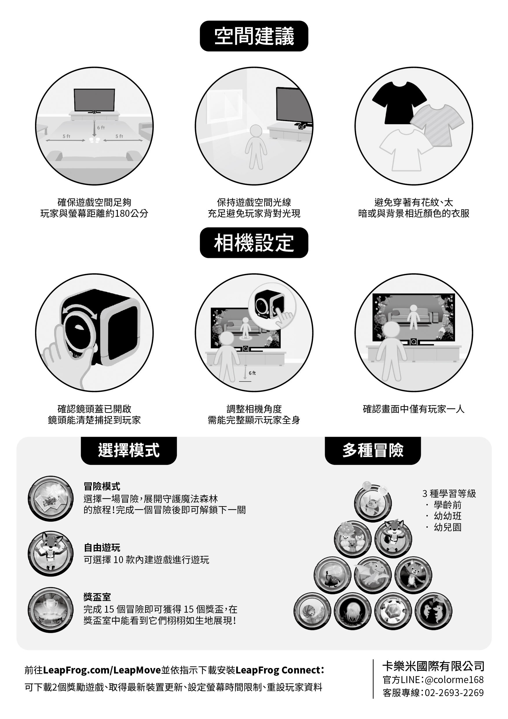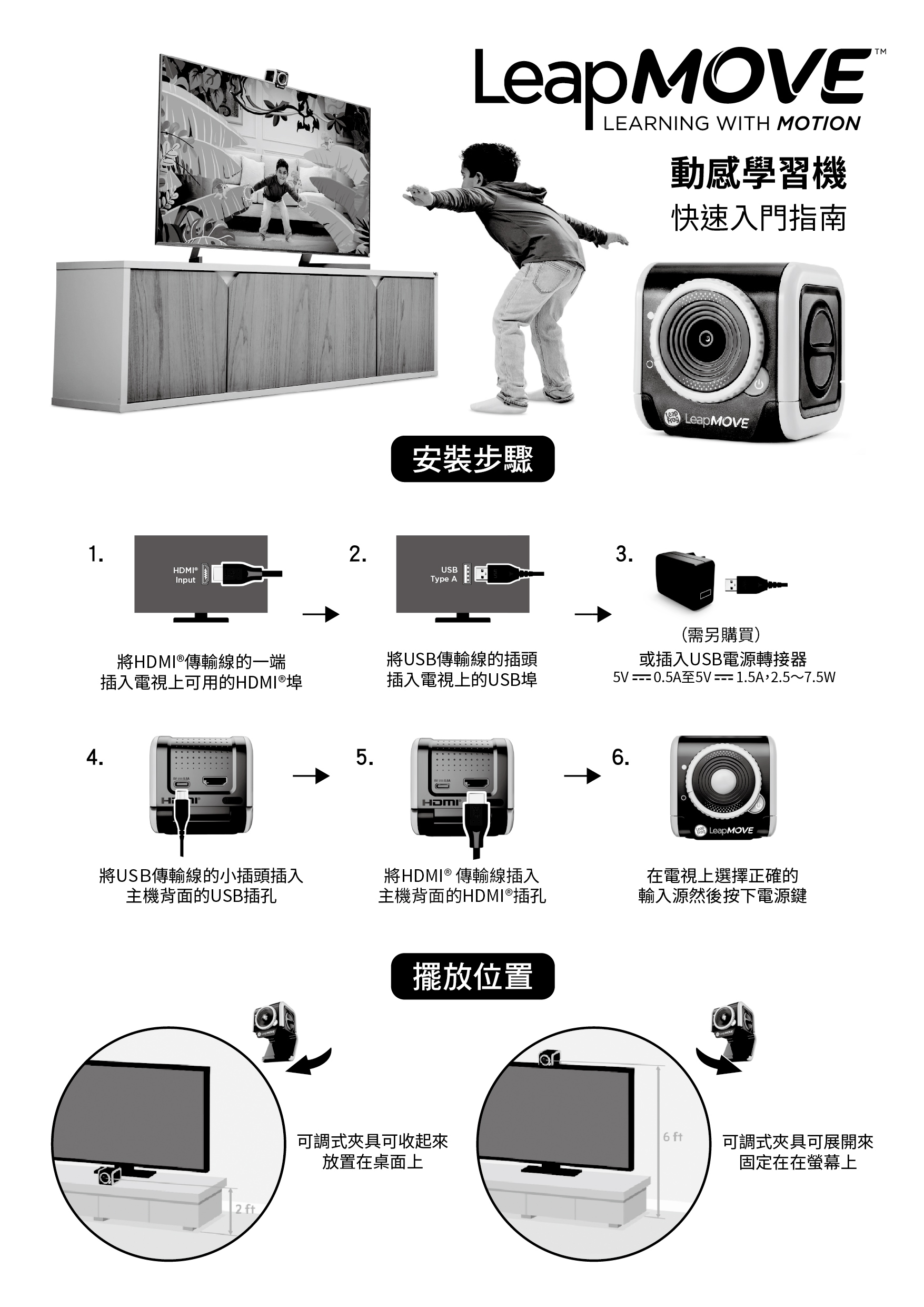 裝設於螢幕上方或電視前方即可開始遊戲