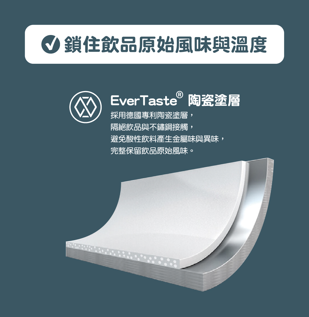 ●採用德國 EverTaste® 陶瓷塗層,適用各類飲品與茶類,