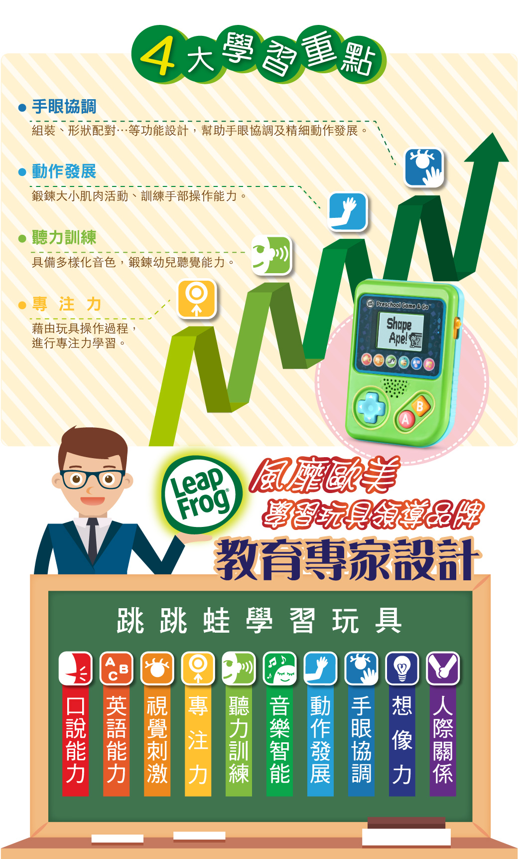 幫助孩子在遊戲中自然認識數字、形狀、英文字母與發音。