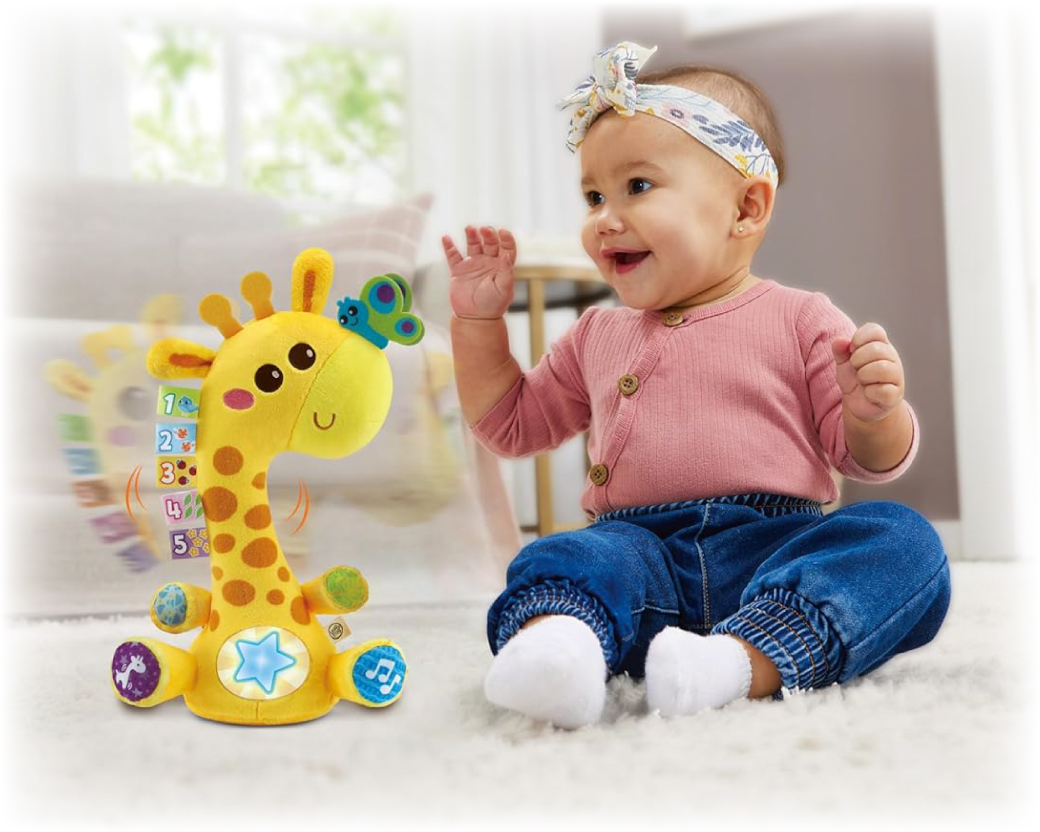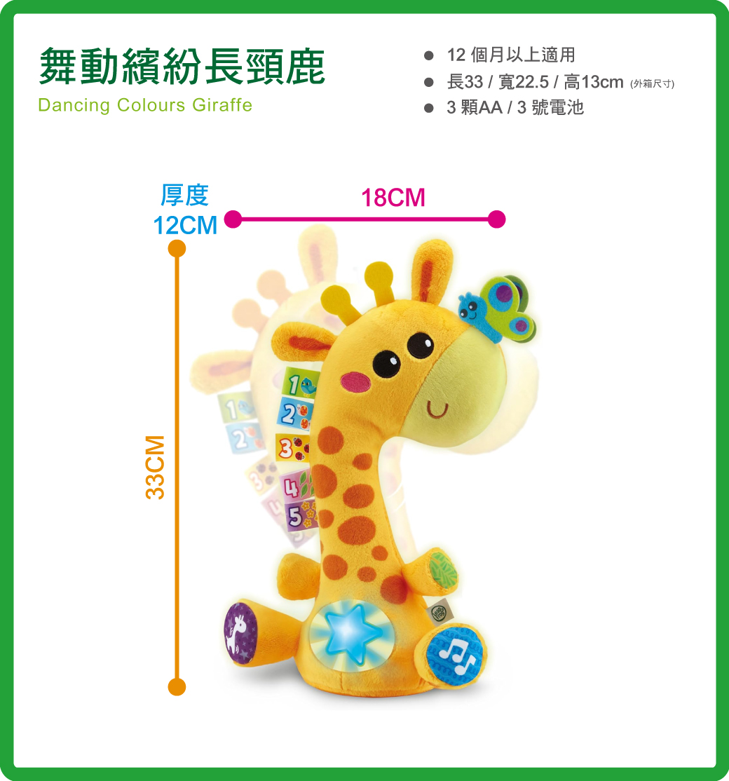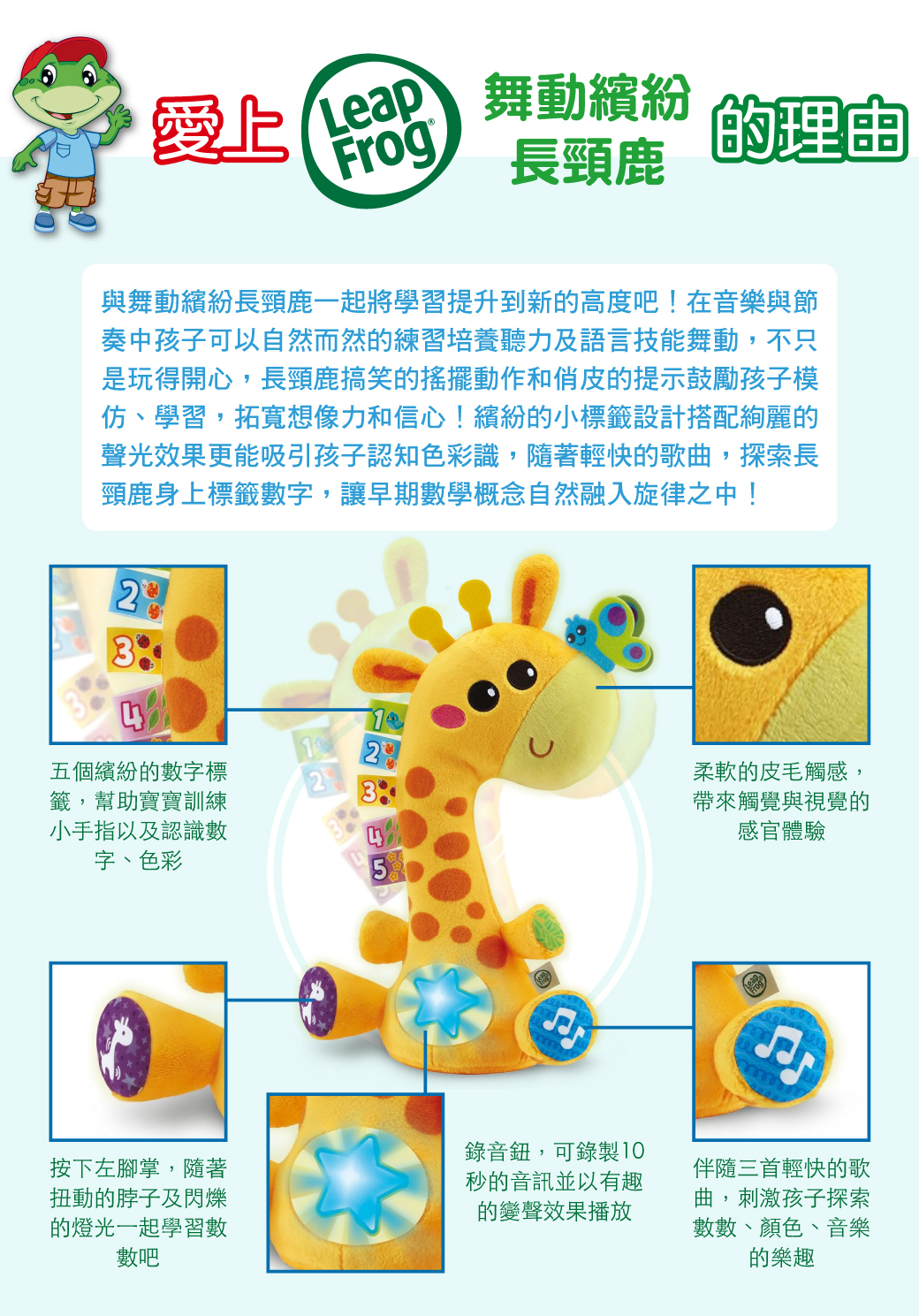 長頸鹿隨著音樂扭動舞步,搭配趣味語音提示,